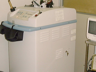 レーザー照射→照射面内の毛根とその周囲にダメージを与える。 - 2〜3年前にアメリカで実用化されたレーザーによる脱毛法は、一時的ではない脱毛法(永久と断言するにはもう少し時間が必要だが、その可能性は大)に革命をもたらした。1平方センチメートル程度の照射皮膚面内の毛を1秒で処理が可能のため、その処理時間がこれまでより大幅に短縮された。